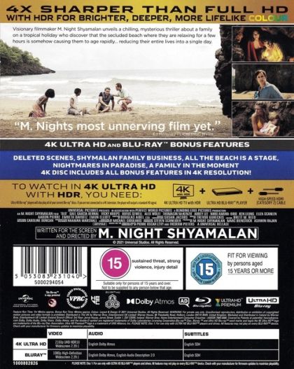 A group of families on a tropical holiday discover that the secluded beach where they are staying is somehow causing them to age rapidly – reducing their entire lives into a single day.