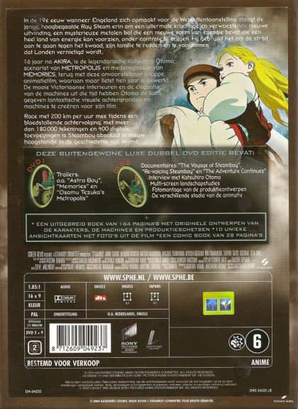 In de 19e eeuw wanneer Engeland zich opmaakt voor de Wereldtentoonstelling slaagt de jonge, hoogbegaafde Ray Steam erin om een uitermate krachtige en verwoestende nieuwe uitvinding, een mysterieuze metalen bal die een nieuwe vorm van energie bevat die een heel land van energie kan voorzien, onder controle te krijgen. Hij gebruikt het om de strijd aan te gaan tegen het kwaad, zijn familie te redden en te voorkomen dat Londen vernietigd wordt.16 jaar na AKIRA, is de legendarische Katsuhiro Ôtomo, scenarist van METROPOLIS en mederegisseur van MEMORIES, terug met deze onvoorstelbaar knappe animatiefilm, waaraan maar liefst tien jaar is gewerkt. De mooie Victoriaanse interieuren en de elegantie van de machines uit die tijd hebben Ôtomo de kans gegeven fantastische visuele achtergronden en machines te creëren voor zijn film.Race met 200 km per uur mee tijdens een bloedstollende achtervolging, met meer dan 180.000 tekeningen en 400 digitale toevoegingen is Steamboy absoluut in nieuw hoogstandje in de geschiedenis van Animé.