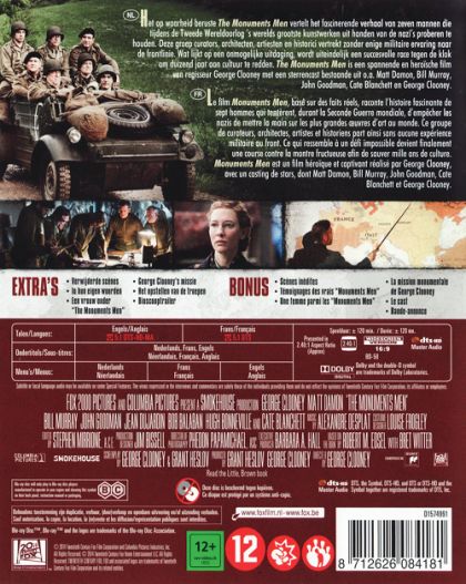 Het op waarheid beruste The Monuments Men vertelt het fascinerende verhaal van zeven mannen die tijdens de Tweede Wereldoorlog ’s werelds grootste kunstwerken uit handen van de nazi’s proberen te houden. Deze groep curators, architecten, artiesten en historici vertrekt zonder enige militaire ervaring naar de frontlinie. Wat lijkt op een onmogelijke uitdaging, wordt uiteindelijk een succesvolle race tegen de klok om duizend jaar aan cultuur te redden. The Monuments Men is een spannende en heroïsche film van regisseur George Clooney met een sterrencast bestaande uit o.a. Matt Damon, Bill Murray, John Goodman, Cate Blanchett en George Clooney.