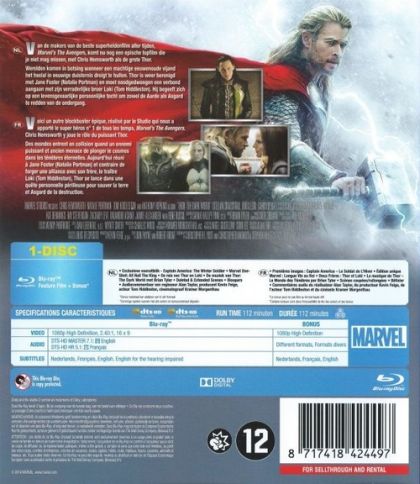 Van de makers van de beste superheldenfi lm aller tijden, Marvel’s The Avengers, komt nu nog een epische topfi lm die je niet mag missen, met Chris Hemsworth als de grote Thor.Werelden komen in botsing wanneer een machtige eeuwenoude vijand het heelal in eeuwige duisternis dreigt te hullen. Thor is weer herenigd met Jane Foster en moet noodgedwongen een verbond aangaan met zijn verraderlijke broer Loki. Hij begeeft zich op een levensgevaarlijke persoonlijke tocht om zowel de Aarde als Asgard te redden van de ondergang.