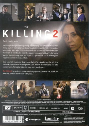 Sarah Lund is terug!Na haar gedwongen ontslag brengt de moord op een advocate haar weer terug bij het politiekorps. De advocate blijkt echter niet het enige slachtoffer. Alles wijst op moslimterrorisme, maar Lund vermoedt dat er meer aan de hand is. De moorden zorgen voor opschudding in alle lagen van de samenleving; van het leger in Afghanistan tot in de hoogste regionen van de Deense politiek.Voor Lund telt maar één ding: meer slachtoffers voorkomen. Ze bijt zich dan ook vast in deze race tegen de klok, hoewel de weerstand van alle kanten komt. Tenslotte is ze niet voor niets ontslagen...The Killing 2 is wederom een waanzinnig spannende serie, die je ook nu weer het liefst in één ruk wil kijken...