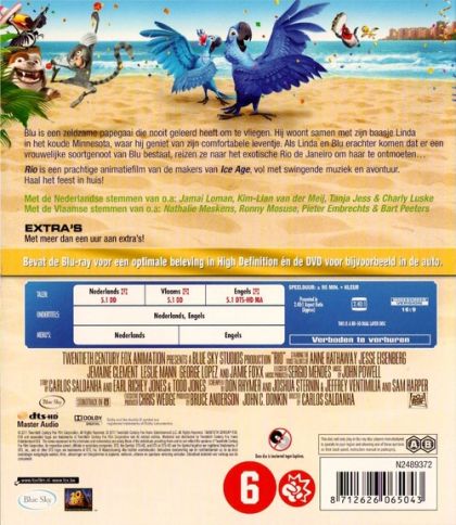 Blu is een zeldzame papegaai die nooit geleerd heeft om te vliegen. Hij woont samen met zijn baasje Linda in het koude Minnesota, waar hij geniet van zijn comfortabele leventje. Als Linda en Blu erachter komen dat er een vrouwelijke soortgenoot van Blu bestaat, reizen ze naar het exotische Rio de Janeiro om haar te ontmoeten...Rio is een prachtige animatiefilm van de makers van Ice Age, vol met swingende muziek en avontuur. Haal het feest in huis!