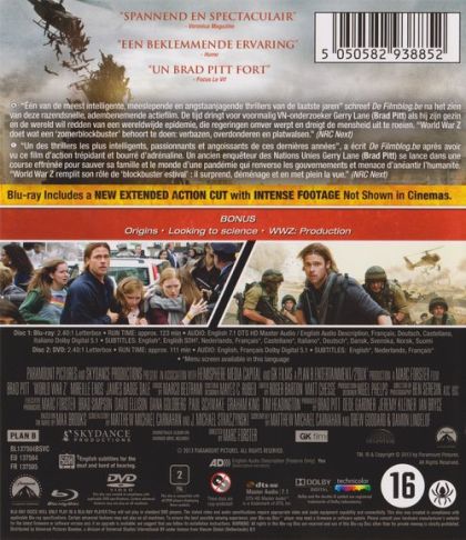 "Eén van de meest intelligente, meeslepende en angstaanjagende thrillers van de laatste jaren" schreef De Filmblog.be na het zien van deze razendsnelle, adembenemende actiefilm. De tijd dringt voor voormalig VN-onderzoeker Gerry Lane (Brad Pitt) als hij zijn gezin en de wereld wil redden van een wereldwijde epidemie, die regeringen omver werpt en dreigt de mensheid uit te roeien. "World War Z doet wat een 'zomerblockbuster' berhoort te doen: verbazen, overdonderen en platwalsen." (NRC Next)