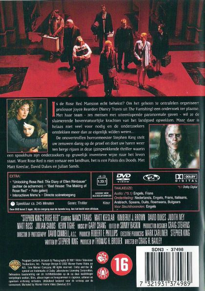 Is de Rose Red Mansion echt behekst ? Om het geheim te ontrafelen organiseert professor Joyce Reardon (Nancy Travis uit The Vanishing) een onderzoek ter plaatse. Met haar team - zes mensen met uiteenlopende paranormale gaven - wil ze de sluimerende bovennatuurlijke krachten van het landgoed opwekken.Maar daar is helaas niet veel voor nodig en de onderzoekers ontdekken meer dan ze eigenlijk wilden weten...De onovertroffen horrormeester Stephen King stelt uw zenuwen danig op de proef en doet uw haren weer ten berge rijzen in deze ijzingwekkende thriller waarin een spookhuis zijn onderzoekers op gruwelijke inventieve wijze naar het leven staat. Want Rose Red is niet zomaar een landhuis, het is een Paleis des Doods. Met Matt Keeslar, David Dukes en Julian Sands.