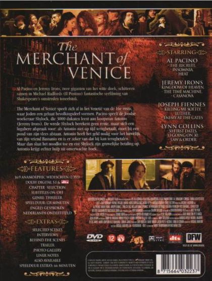Al Pacino en Jeremy Irons, twee giganten van het witte doek, schitteren samen in Michael Radfords (Il Postino) fantastische verfilming van Shakespeare's omstreden toneelstuk.The Merchant of Venice speelt zich af in het Venetië van de 16e eeuw, waar Joden een gehaat bevolkingsdeel vormen. Pacino speelt de Joodse woekeraar Shylock, die 3000 dukaten leent aan koopman Antonio (Jeremy Irons). De wrede Shylock berekent geen rente, maar stelt een lugubere afspraak voor: als Antonio niet op tijd terugbetaalt, moet hij een pond van zijn vlees afstaan. Antonio heeft het geld nodig voor het huwelijk van zijn vriend Bassanio en is er zeker van dat hij kan terugbetalen. Maar dan slaat het noodlot toe en eist Shylock zijn gruwelijke betaling op. Antonio krijgt echter hulp uit een onverwachte hoek..