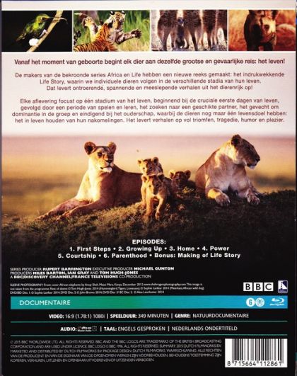 Life Story takes us on the greatest of all adventures--the journey through life. For animals there is just one goal in life--to continue their bloodline in the form of offspring. They are an animal's legacy for the future. The story of their journey is about hope, facing danger, actions of breath-taking boldness, extraordinary behaviours and, ultimately, success against the odds. This spectacular series follows that journey through its six crucial stages: taking their first steps in the world, growing up, finding a home, gaining power, winning a mate and succeeding as a parent. Life Story brings a new level of story-telling to the landmark genre, creating an experience that is both intimate and intense. We follow the struggles and triumphs of individual animals, drawing the viewer into their worlds, to sense the danger, the challenges and the decisions they must face.Vanaf het moment van geboorte begint elk dier aan dezelfde grootse en gevaarlijke reis: het leven!De makers van de bekroonde series Africa en Life hebben een nieuwe reeks gemaakt: het indrukwekkende Life Story, waarin we individuele dieren volgen in de verschillende stadia van hun leven. Dat levert ontroerende, spannende en meeslepende verhalen uit het dierenrijk op!Elke aflevering focust op één stadium van het leven, beginnend bij de cruciale eerste dagen van leven, gevolgd door een periode van spelen en leren, het zoeken naar een geschikte partner, het gevecht om dominantie in de groep en eindigend bij het ouderschap, waarbij de dieren nog maar één levensdoel hebben: het in leven houden van hun nakomelingen. Het levert verhalen op vol triomfen, tragedie, humor en plezier.