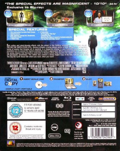 Epic action and mind-blowing effects rock the planet in this thrilling reinvention of the 1950s classic THE DAY THE EARTH STOOD STILL. Reeves is Klaatu, a being, whose arrival on Earth triggers an unstoppable series of events that threaten all mankind. In a desperate attempt to save humanity, governments and scientists race to unravel the mystery behind the visitor's appearance. When a woman (Jennifer Connelly) and her young stepson find themselves embroiled in Klaatu's plans, they become the world's only hope to stave off apocalyptic annihilation. This edition also contains a bonus Digital Copy of the film, now you can watch The Day the Earth Stood Still where you want, when you want!