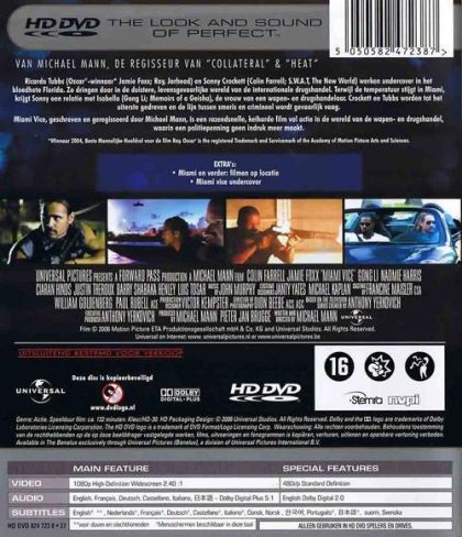 Ricardo Tubbs (Academy Award® - winner*, Jamie Foxx, Ray, Jarhead) and Sonny Crockett (Colin Farrell, S.W.A.T, The New World) are both working undercover in the heat of Florida, penetrating the dark, dollar-fuelled abyss of the drugs world.But as the temperature soars in Miami, Sonny gets romantically involved with Isabella (Gong Li, Memoirs of a Geisha) the wife of an arms and guns trafficker. Crockett and Tubbs are gradually pushed to the edge, and suddenly, the distinction between cops and player becomes dangerously blurred.Written and directed by Michael Mann, Miami Vice will take you on a fast-paced, action-packed and hard-hitting journey in the world of gun and narcotrafficking where badges don't make a difference.*Winner 2004, Actor in a leading role, Ray. Academy Award® is the registered trademark and service mark of the Academy of Motion Picture Arts and Sciences