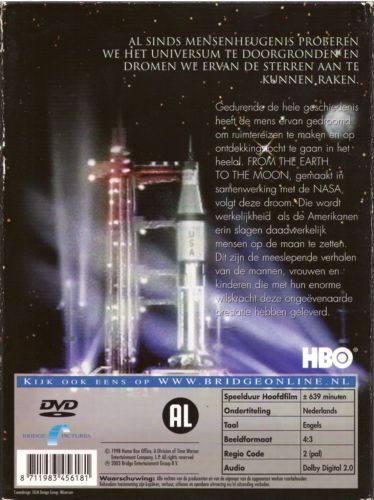 Gedurende de hele geschiedenis heeft de mens ervan gedroomd om ruimtereizen te maken en op ontdekkingstocht te gaan in het heelal. FROM THE EARTH TO THE MOON, gemaakt in samenwerking met de NASA, volgt deze droom. Die wordt werkelijkheid als de Amerikanen erin slagen daadwerkelijk mensen op de maan te zetten. Dit zijn de meeslepende verhalen van de mannen, vrouwen en kinderen die met hun enorme wilskracht deze ongeëvenaarde prestatie hebben geleverd.Disc 1 - 213.33 Minutes- Can We Do This?- Apollo 1- We Have Cleared The Tower- 1968Disc 2 - 200.23 Minutes- Spider- Mare Transquilitatis- That's All There Is- We Interrupt This ProgramDisc 3 - 210.47 Minutes- For Miles & Miles- Galileo Was Right- The Original Wives CLub- Le Voyage Dans La Lune