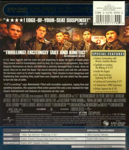 A U.S. Navy Captain and his crew are just beginning to enjoy 48 hours of leave when they receive word to immediately return to duty. On a top secret assignment, they must disguise themselves as Nazis and infiltrate a severely damaged Nazi U-boat. Once on board, they are to steal the Nazi's top secret decoding device and sink the sub before the Germans catch on to what's really happening. Their mission is more dangerous and frightening than anything they could have ever imagined, but one which has the power to turn the tide of the battle."U-571 is exciting!" says 'Newsweek'. Filled with incredible explosions, raging fires and speeding torpedoes, this suspense-filled action-packed film sets a new standard for high impact entertainment and features an impressive all-star cast.