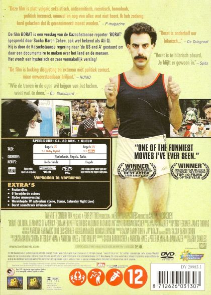 De film BORAT is een verslag van de Kazachstaanse reporter 'BORAT' (gespeeld door Sacha Baron Cohen, ook wel bekend als Ali G). Hij is door de Kazachstaanse regering naar 'de US and A' gestuurd om daar een documentaire te maken over het land en de mensen. Het wordt een hysterisch en zeer vermakelijk verslag!