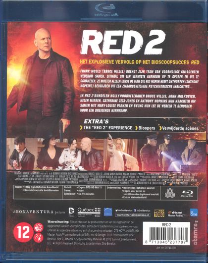 Frank Moses (Bruce Willis) brengt zijn team van voormalige CIA-agenten wederom samen, ditmaal om een vermiste kernbom op te sporen en uit te schakelen. Ze moeten alleen eerst de man die het wapen heeft ontworpen (Anthony Hopkins) bevrijden uit een zwaarbeveiligde psychiatrische inrichting...In RED 2 bundelen Hollywoodveteranen Bruce Willis, John Malkovich, Helen Mirren, Catherine Zeta-Jones en Anthony Hopkins hun krachten om samen met Mary-Louise Parker en Byung Hun Lee de wereld te behoeden voor een dreigende kernramp.