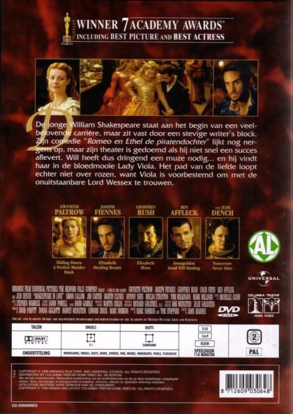 De jonge William Shakespeare staat aan het begin van een veelbelovende carrière, maar zit vast door een stevige writer's block. Zijn comedie "Romeo en Ethel de piratendochter" lijkt nog nergens op, maar zijn theater is gedoemd als hij niet snel een succes aflevert. Will heeft dus dringend een muze nodig... en hij vindt haar in de bloedmooie Lady Viola. Het pad van de liefde loopt echter niet over rozen, want Viola is voorbestemd om met de onuitstaanbare Lord Wessex te trouwen.