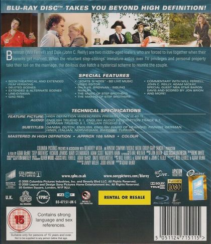 Brennan (Will Ferrell) and Dale (John C. Reilly) are two middle-aged loafers who are forced to live together when their parents get married. When the reluctant step-siblings' immature antics over TV privileges and personal property take their toll on the marriage, the devious duo hatch a hysterical scheme to reunite the couple.