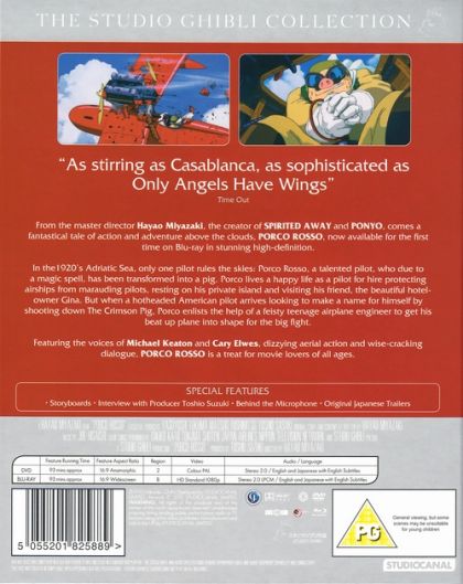 From the master director Hayao Miyazaki, the creator of SPIRITED AWAY and PONYO, comes a fantastical tale of action and adventure above the clouds, PORCO ROSSO, now available for the first time on Blu-ray in stunning high-definition.In the 1920's Adriatic Sea, only one pilot rules the skies: Porco Rosso, a talented pilot, who due to a magic spell, has been transformed into a pig. Porco lives a happy life as a pilot for hire protecting airships from marauding pilots, resting on his private island and visiting his friend, the beautiful hotel-owner Gina. But when a hotheaded American pilot arrives looking to make a name for himself by shooting down The Crimson Pig, Porco enlists the help of a feisty teenage airplane engineer to get his beat up plane into shape for the big fight.Featuring the voices of Michael Keaton and Cary Elwes, dizzying aerial action and wise-cracking dialogue, PORCO ROSSO is a treat for movie lovers of all ages.