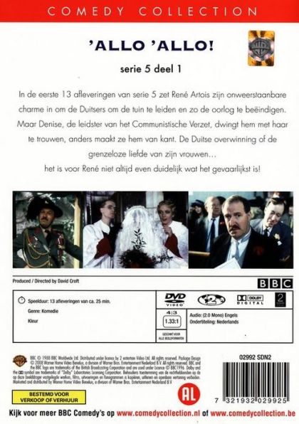 In de eerste 13 afleveringen van serie 5 zet René Artois zijn onweerstaanbare charme in om de Duitsers om de tuin te leiden en zo de oorlog te beëindigen. Maar Denise, de leidster van het Communistische Verzet, dwingt hem met haar te trouwen, anders maakt ze hem van kant. De Duitse overwinning of de grenzeloze liefde van zijn vrouwen... het is voor René niet altijd even duidelijk wat het gevaarlijkst is!Afleveringen:01. Desperate Doings in the Dungeon02. The Camera in the Potato03. Dinner with the General04. The Dreaded Circular Saw05. Otherwise Engaged06. A Marriage of Inconvenience07. No Hiding Place08. The Arrival of the Homing Duck09. Watch the Birdie10. René - Under An Assumed Nose11. The Confusion of the Generals12. Who's for the Vatican?13. Ribbing the Bonk