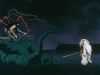 Naraku is trying to absorb Sesshomaru so that he can get the powers of a complete demon. But Inuyasha breaks through his barrier and interferes. When Naraku sees that the tables have been turned, he retreats behind his miasma.