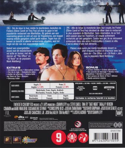 Om de sluer in hun relatie te doorbreken, besluiten de Fosters (Steve Carell en Tina Fey) uit eten te gaan in het populairste restaurant van Manhattan. Bij gebrek aan een reservering geven ze zich uit voor de Tripplehorns, een koppel waarop enkele gangsters actief jacht maken. Tegen hun zin komen ze terecht in allerlei verwarrende situaties, wat het begin zal zijn van een waanzinnige nacht...Beleef een onvergetelijke avond met dit meesterwerk vol actie en humor, met de sterren uit "The Office" en "30 Rock" en de populaire Mark Wahlberg!