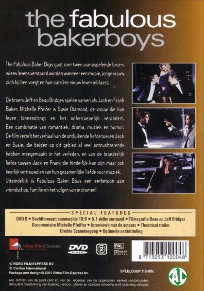 The Fabulous Baker Boys gaat over twee pianospelende broers wiens levens verstoord worden wanneer een mooie, jonge vrouw zich bij hen voegt en hun carrière nieuw leven inblaast.De broers Jeff en Beau Bridges spelen samen als Jack en Frank Baker. Michelle Pfeiffer is Susie Diamond, de vrouw die hun leven binnendringt en het onherroepelijk verandert. Een combinatie van romantiek, drama, muziek en humor. De film vertelt het verhaal van de ontluikende liefde tussen Jack en Susie, die beiden op dit gebied al veel ontnuchterends hebben meegemaakt in het verleden, en van de broederlijke liefde tussen Jack en Frank die hinderlijk kan zijn maar ook heerlijk vertrouwd en van hun gezamelijke liefde voor muziek. Uiteindelijk is Fabulous Baker Bous een eerbetoon aan vriendschap, familie en het volgen van je dromen!