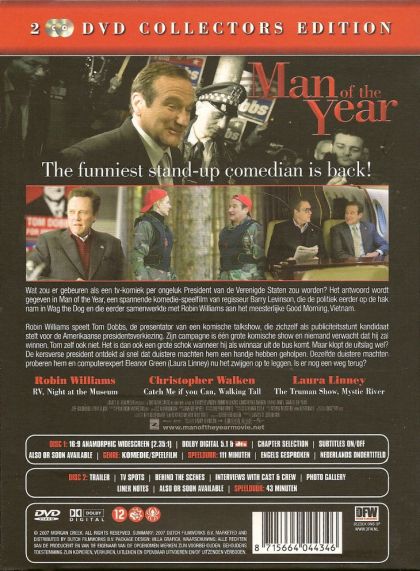 Wat zou er gebeuren als een tv-komiek per ongeluk President van de Verenigde Staten zou worden? Het antwoord wordt gegeven in Man of the Year, een spannende komedie van regisseur Barry Levinson, die de politiek eerder op de hak nam in Wag the Dog en die eerder samenwerkte met Robin Williams aan het meesterlijke Good Morning, Vietnam.Robin Williams speelt Tom Dobbs, de presentator van een komische talkshow, die zichzelf als publiciteitsstunt kandidaat stelt voor de Amerikaanse presidentsverkiezing. Zijn campagne is één grote komische show en niemand verwacht dat hij zal winnen. Tom zelf ook niet. Het is dan ook een grote schok wanneer hij als winnaar uit de bus komt. Maar klopt de uitslag wel? De kersverse president ontdekt al snel dat duistere machten hem een handje hebben geholpen. Dezelfde duistere machten proberen hem en computerexpert Eleanor Green (Laura Linney) nu het zwijgen op te leggen. Is er nog een weg terug?