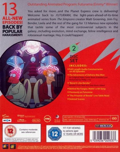 You asked for more...and the Planet Express crew is delivering! Welcome back to FUTURAMA, the light-years-ahead-of-its-time animated series from The Simpsons creator Matt Groening. Join Fry, Bender, Leela and the rest of the gang for 13 hilarious new episodes that tackle some of the most controversial subjects in the galaxy...including evolution, mind exchange, feline intelligence and robosexual marriage. Hey, it could happen!1 Rebirth2 In-A-Gadda-Da-Leela3 Attack of the Killer App4 Proposition Infinity5 The Duh-Vinci Code6 Lethal Inspection7 The Late Philip J. Fry8 That Darn Katz!9 A Clockwork Origin10 The Prisoner of Benda11 Lrrreconcilable Ndndifferences12 The Mutants Are Revolting13 The Futurama Holiday Spectacular