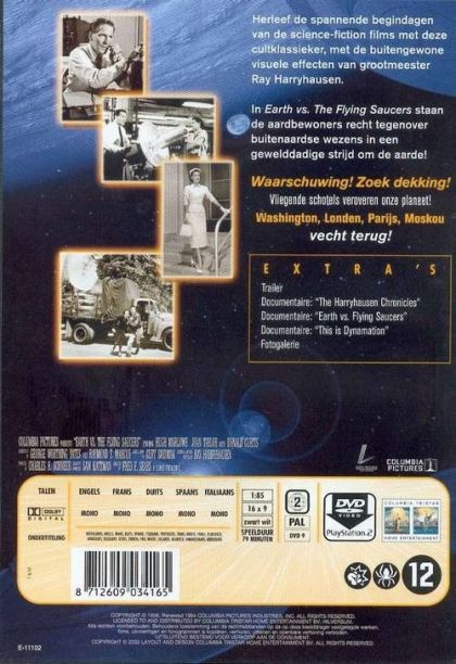 Herleef de spannende begindagen van de science-fiction films met deze cultklassieker, met de buitengewone visuele effecten van grootmeester Ray Harryhausen.In 'Earth vs The Flying Saucers' staan de aardbewoners recht tegenover buitenaardse wezens in een gewelddadige strijd om de aarde!Waarschuwing! Zoek dekking! Vliegende schotels veroveren onze planeet! Washington, Londen, Parijs, Moskou vecht terug!