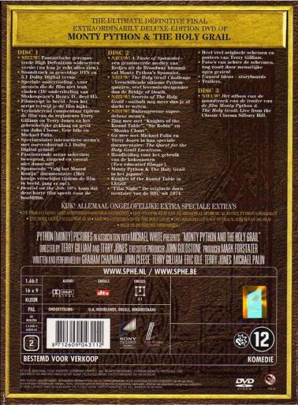The Ultimate Definitive Final Extraordinarily Deluxe Edition DVD ofMonty Python & The Holy GrailMonty Python and the Holy Grail is wederom een giller van een film! King Arthur en zijn ridders gaan op zoek naar de Heilige Graal. Maar let op! Dit is geen gewone film over middeleeuwse taferelen... dit is Monty Python. Hylarisch, absurd en te gek voor woorden. Zakdoeken bij de hand... het is weer janken van het lachen.
