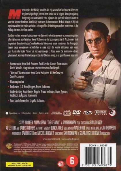 Meesterdief Doc McCoy weet dat zijn vrouw met de plaatselijke politieke machthebber naar bed is geweest om hem uit de gevangenis te krijgen. Wat hij niet kan weten is welke sinistere aaneenschakeling van bedriegerijen er hem te wachten staat nu hij weer vrij is - en dat hij de perfecte kraak zal plegen.Hou je vast en laat je door Steve McQueen en Ali MacGraw meeslepen in deze onnavolgbare thriller naar het boek van Jim Thompson. Regisseur Sam Peckinpah flmde 'The Getaway' volledig op locatie in Texas en in chronologische volgorde - vanaf de openingsscène in de Staatsgevangenis van Huntsville tot en met de explosieve climax aan de grens in El Paso. Eenmaal 'The Getaway' gelanceerd, is er geen ontkomen meer aan.