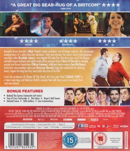 Beneath Bruce Garrett's (Nick Frost) under-confident, out-of-shape exterior, the passionate beating heart of a salsa king lays dormant. Only one woman, his smart, funny an gorgeous new boss Julia (Rashida Jones), can reignite his Latin fire. But she's way out of his league, and with expert lothario and alpha-male office nemesis Drew (Chris O'Dowd) in rampant pursuit, can Bruce's loyal sister (Olivia Colman), childhood dance mentor (Ian McShane), and crazy new amateur salsa pal (Kayvan Novak) help him unshackle his dancing beast, regain his long lost fury and claim the love of his life?From the producers of Shaun Of The Dead, Hot Fuzz and Paul, CUBAN FURY is a heart-warming and hilarious British comedy that will leave you in no doubt that real men dance!