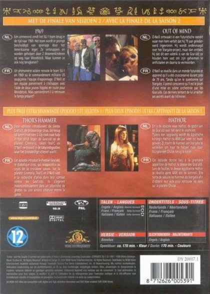 Seizoen 2: Episodes 21-22, Seizoen 1: Episodes 9, 13Episode 221: 1969Een zonnewind zendt het SG-1 team terug in de tijd naar 1969. Het team wordt er prompt beschuldigd van spionage door het Amerikaanse leger. Ze ontsnappen en worden geholpen door 2 bloemenkinderen op weg naar Woodstock. Maar kunnen ze nog terugkeren?Episode 222: Out Of MindO'Neill ontwaakt in een futuristische wereld waar men hem verteld dat hij 79 jaar geleden werd ingevroren. Hij wordt ondervraagd over het Stargate-project, maar dan ontdekt hij dat dit een valstrik is van de Goa'uld: ze houden hem vast om zijn geheimen te ontfutselen en daarna te vermoorden.Episode 109: Thor's HammerDeze episode introduceert de Eerste Goa'uld, de boosaardige Unas, die terug zal keren in seizoen 3. Op zoek naar hulp in hun strijd tegen de Goa'uld op de planeet Cimmeria, raken Teal'c en O'Neill verdwaald in de labyrinthgrotten waar het boosaardige schepsel wacht...Episode 113: HathorDit is de episode waar Hathor, de godin van de Goa'uld voor het eerst in voorkomt. Tijdens een opgraving wordt de Egyptische koningin Hathor na 4000 jaar weer tot leven gewekt. Zij tracht de mannen van Stargate te verleiden om haar te helpen naar haar thuisplaneet Chulak terug te keren.