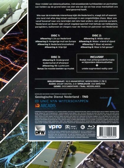 Door middel van datavisualisaties, indrukwekkende luchtbeelden en portretten van helden op de grond laten we zien wie we zijn en hoe onze mentaliteit ons land gevormd heeft.Wie naar de krioelende mierenhoop kijkt die Nederland is, vraagt zich af waarom ons land niet elke dag totaal vastloopt in een ongelofelijke chaos. Maar wie van bovenaf naar ons land kijkt ziet iets heel anders: een precisie uurwerk. 'Nederland van Boven' kijkt vanuit vogelperspectief met behulp van helikopters, paragliders, ballonnen en vliegers naar de ritmes en patronen van Nederland.
