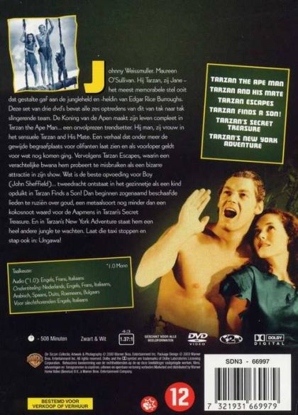 Johnny Weissmuller. Maureen O'Sullivan. Hij Tarzan, zij Jane - het meest memorabele stel ooit dat gestalte gaf aan de jungleheld en -heldin van Edgar Rice Burroughs. Deze set van drie dvd's bevat alle zes optredens van dit van tak naar tak slingerende team. De Koning van de Apen maakt zijn leven compleet in Tarzan the Ape Man... een onvolprezen trendsetter. Hij man, zij vrouw in het sensuele Tarzan and His Mate. Een verhaal dat onder meer de gewijde begraafplaats voor olifanten laat zien en als voorloper geldt voor wat nog komen ging. Vervolgens Tarzan Escapes, waarin een verachtelijke bwana hem probeert te misbruiken als een bizarre attractie in zijn show. Wat is de beste opvoeding voor Boy (John Sheffield)... tweedracht ontstaat in het gezinnetje als een kind opduikt in Tarzan Finds a Son! Dan beginnen zogenaamd beschaafde lieden te ruziën over goud, een metaalsoort nog minder dan een kokosnoot waard voor de Aapmens in Tarzan's Secret Treasure. En in Tarzan's New York Adventure staat hem een heel andere jungle te wachten. Laat die taxi stoppen en stap ook in: Ungawa!