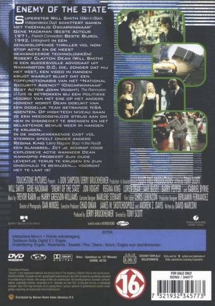 Superster Will Smith (Men in Black, Independence Day) schittert samen met tweemalig Oscarwinnaar® Gene Hackman (Beste Acteur 1971, French Connection; Beste Bijrol 1992, Unforgiven) in een zenuwslopende thriller vol non-stop actie en de meest geavanceerde technologieën!Robert Clayton Dean (Will Smith) is een succesvolle advocaat uit Washington D.C. die, zonder dat hij het weet, een video in handen krijgt waaruit blijkt dat een topfunctionaris van het "Nationaal Security Agency" (Oscarwinnaar® Best Actor John Voight; The Rainmaker, U-Turn) is betrokken bij een politieke moord! Van het ene op het andere moment wordt Dean doelwit van een dodelijk team getrainde NSA agenten. Op high-tech niveau gaan ze een meedogenloze strijd aan om hem in diskrediet te brengen en het belastende bewijs weer in handen te krijgen.In de indrukwekkende cast vol sterren speelt onder andere Regina King (Jerry Maguire, Boyz'n the Hood) een glansrol. Zet je schrap voor explosieve actie wanneer Dean wanhopig probeert zijn oude leventje terug te krijgen en zijn onschuld te bewijzen.... voordat het te laat is!