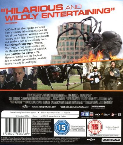 A 50-foot-tall alien spider escapes from a military lab and rampages the city of Los Angeles. When a massive military strike fails, the city’s scientists and soldiers turn to an unlikely hero. Alex (Greg Grunberg – Heroes, Star Trek), a bug exterminator, and his Mexican security guard sidekick, Jose (Lombardo Boyar – 24, Modern Family), are the hapless duo who team up to kill the creature before the city is destroyed.