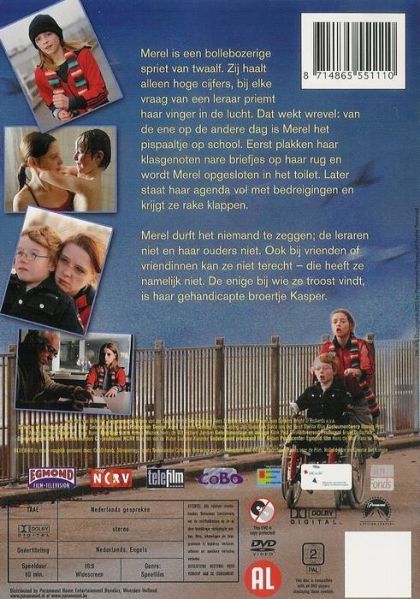 Merel is een bollebozige spriet van twaalf. Zij haalt alleen hoge cijfers, bij elke vraag van de leraar priemt haar vinger in de lucht. Dat wekt wrevel: van de ene op de andere dag is Merel het pispaaltje op school. Eerst plakken haar klasgenoten nare briefjes op haar rug en wordt Merel opgesloten in het toilet. Later staat haar agenda vol met bedreigingen en krijgt ze rake klappen. Merel durft het niemand te zeggen; de leraren en haar ouders niet. Ook bij vrienden of vriendinnen kan ze niet terecht - die heeft ze namelijk niet. De enige bij wie ze troost vindt, is haar gehandicapte broertje Kasper.