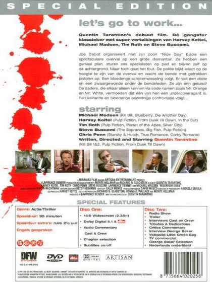 Quentin Tarantino's debuut film. Dé gangster klassieker met super vertolkingen van Harvey Keitel, Michael Madsen, Tim Roth en Steve Buscemi.Joe Cabot organiseert met zijn zoon "Nice Guy" Eddie een spectaculaire overval op een grote diamantair. Ze hebben een geniaal plan, sturen zes specialisten op pad en blijven zelf op de achtergrond. Maar toch gaat het fout. De politie blijkt exact op de hoogte te zijn van de overval en wacht de bende met getrokken pistolen op. Een bloederige schotenwisseling volgt. Er valt een dode en een zwaargewonde onder de bendeleden. Ze zijn erin geluisd! De daders, die elkaar alleen kennen via code namen zoals Mr. Orange en Mr. White, vermoeden dat één van hen een undercoveragent is. Een keiharde en bloederige onderlinge confrontatie volgt...