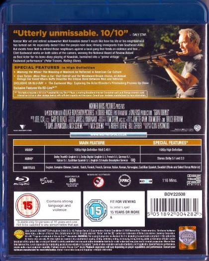 Korean War vet and retired autoworker Walt Kowalski doesn't like much how his life or his neighborhood has turned out. He especially doesn't like the people next door, Hmong immigrants from Southeast Asia. But events force Walt to defend those neighbors against a local gang that feeds on violence and fear.Clint Eastwood works on both sides of the camera, winning the National Board of Review Award as Best Actor for his bone-deep playing of Kowalski, burnished into a "prime vintage Eastwood performance" (Peter Travers, Rolling Stone).
