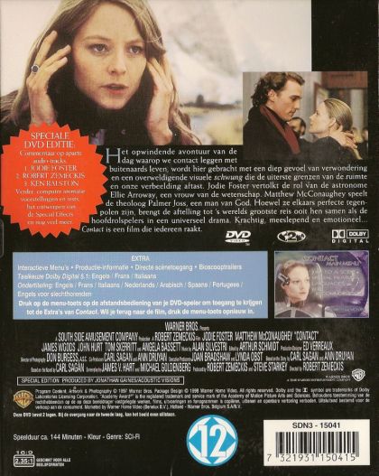 Het opwindende avontuur van de dag waarop we contact leggen met buitenaards leven, wordt hier gebracht met een diep gevoel van verwondering en een overweldigende visuele schwung die de uiterste grenzen van de ruimte en onze verbeelding aftast. Jodie Foster vertolkt de rol van de astronome Ellie Arroway, een vrouw van de wetenschap. Matthew McConaughey speelt de theoloog Palmer Joss, een man van God. Hoewel ze elkaars perfecte tegenpolen zijn, brengt de aftelling tot 's werelds grootste reis ooit hen samen als de hoofdrolspelers in een universeel drama. Krachtig, meeslepend en emotioneel... Contact is een film die iedereen raakt.