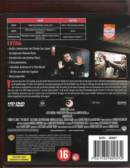 Vang hem als je kan. Harrison Ford en Tommy Lee Jones zetten het op een lopen in deze ademloze mensenjacht, geïnspireerd op de gelijknamige TV-reeks. Ford speelt de ontsnapte gevangene Dr. Richard Kimble, een chirurg uit Chicago die valselijk beticht werd van de moord op zijn vrouw en vastbesloten is om zijn onschuld te bewijzen door de politie op het spoor te brengen van een éénarmige man, de échte moordenaar. Jones (die voor zijn rol in 1993 zowel een Oscar ® als een Golden Globe in de wacht sleepte voor Beste Mannelijke Bijrol) vertolkt U.S. Marshal Sam Gerard, een niet-aflatende speurneus met het instinct van een bloedhond. De jager en het wild gunnen elkaar geen enkele adempauze en regie van Andrew Davis (Under Siege) kent slechts één versnelling: de hoogste!