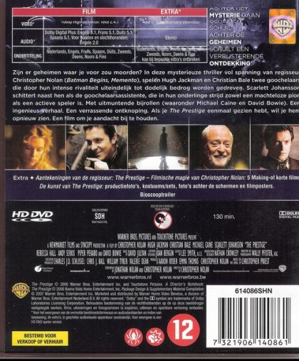 Zijn er geheimen waar je voor zou moorden? In deze mysterieuze thriller vol spanning van regisseur Chritopher Nolan (Batman Begins, Memento), spelen Hugh Jackman en Christian Bale twee goochelaars die door hun intense rivaliteit uiteindelijk tot dodelijk bedrog worden gedreven. Scarlett Johansson schittert naast hen als de goochelaarsassistente, die in hun onderlinge strijd zowel een machteloze pion als een actieve speler is. Met uitmuntende bijrollen (waaronder Michael Caine en David Bowie). Een ingenieus verhaal. Een verrassende ontknoping. Als je The Prestige eenmaal gezien hebt, wil je hem opnieuw zien. Een film om je aandacht bij te houden.
