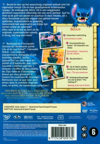 Bereid je voor op het waanzinnig origineel verhaal over het eigenwijze meisje Lilo en haar geadopteerde buitenaardse 'puppy', de ontdeugende Stitch. Hij is een weggelopen genetisch experiment afkomstig van een verre planeet. Surf nu mee op de golf van plezier en avontuur in deze nieuwe, uit 2 discs bestaande speciale uitgave met geheel nieuwe spelletjes, muziekvideo's en geweldig bonusmateriaal waarmee jij een kijkje kunt nemen achter de schermen! Alles waar je zo dol op bent uit de originele, supersonische comedy is terug, met nog veel meer!