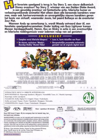 Het favoriete speelgoed is terug in Toy Story 2, een nieuw dolkomisch Disney avontuur! Toy Story 2, winnaar van een Golden Globe Award, is een geweldig avontuur vol fantastische actie, hilarische humor en verbazingwekkende animatie! Niet alleen doen alle beroemde karakters weer mee, maar ook hartverwarmende en onvergetelijke nieuwe karakters geven het beste van zichzelf, waaronder Jessie, het paard Bullseye en de avonturier Zeur Piet.Wanneer Andy op zomerkamp is, wordt Woody ontvoerd door Al, een fanatieke speelgoedverzamelaar. Onder leiding van Buzz Lightyear komen Meneer Aardappelhoofd, Hamm, Rex en Slinky in actie in een avontuurlijke en hilarische reddingsmissie waar iedereen volop van zal genieten!