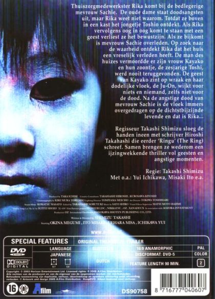 Thuiszorgmedewerkster Rika komt bij de bedlegerige mevrouw Sachie. De oude dame staat doodangsten uit, maar Rita weet niet waarom. Totdat ze boven in een kast het jongetje Toshio ontdekt. Als Rika vervolgens oog in oog komt te staan met een geest verliest ze het bewustzijn. Als ze bijkomt is mevrouw Sachie overleden. Op zoek naar de waarheid ontdekt Rika dat het huis een vreselijk verleden heeft. De man des huizes vermoordde er zijn vrouw Kayako en hun zoontje, de zesjarige Toshio, werd nooit teruggevonden. De geest van Kayako zint op wraak en haar dodelijke vloek, de Ju-On, wijkt voor niets en niemand, zelfs niet voor de dood. Na de angstige dood van mevrouw Sachie is de vloek immers overgedragen op de dichtsbijzijnde levende en dat is Rika...Regisseur Takashi Shimizu sloeg de handen ineen met schrijver Hiroshi Takahashi die eerder 'Ringu' (The Ring) schreef. Samen brengen ze wederom een ijzingwekkende thriller vol geesten en angstige momenten.
