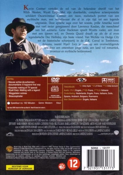 Kevin Costner vertolkt de rol van de bekendste sheriff van het Wilde Westen, Wyatt Earp. Met zijn doorleefde, complexe acteerprestatie schildert Oscarwinnaar Costner een rauw, realistisch portret van een mythische man, een wetsdienaar die al in zijn tijd tot een legende uitgroeide. Deze epische saga over het woeste, prille Amerika werd met veel zwier geregisseerd door Lawrence Kasdan, die meeschreef aan het scenario. Gene Hackman speelt Wyatts vader, een man met een ijzeren wil, en Dennis Quaid draaft op als de al even legendarische Doc Holliday, zijn beste vriend. Van Wichita via Dodge City tot de historische schietpartij in de O.K. Corral in Tombstone, Arizona, neemt Wyatt Earp je mee op een overweldigende reis door een ontembare jonge natie, een land vol romantiek, avontuur en mythische heldenmoed.