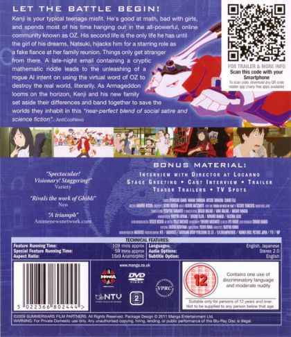 Kenji is your typical teenage misfit. He's good at math, bad with girls, and spends most of histime hanging out in the all-powerful, online community known as OZ. His second life is the only life he has until the girl of his dreams, Natsuki, hijacks him for a starring role as a fake fiance at her family reunion. Things only get stranger from there. A late-night email containing a cryptic mathematic riddle leads to the unleashing of a rogue AI intent on using the virtual world of OZ to destroy the real world, literally. As Armageddon looms on the horizon, Kenji and his new family set aside their differences and band together to save the worlds they inhabit in this "near-perfect blend of social satire and science fiction". AinItCoolNews