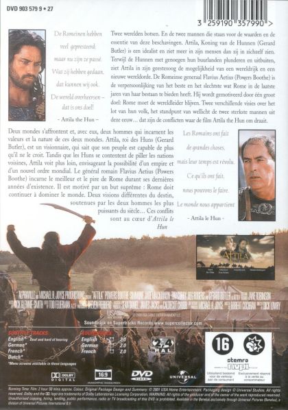De Romeinen hebben veel gepresteerd; maar nu zijn ze passé. Wat zij hebben gedaan, dat kunnen wij ook. De wereld overheersen - dat is ons doel! - Attila the Hun - Twee werelden botsen. En de twee mannen die staan voor de waarden en de essentie van deze beschavingen. Attila, Koning van de Hunnen (Gerard Butler) is een idealist en ziet meer in zijn mensen dan zij in zichzelf zien. Terwijl de Hunnen hun buurlanden plunderen en uitbuiten, ziet Attila in zijn geestesoog de mogelijkheid van een wereldrijk en een nieuwe wereldorde. De Romeinse generaal Flavius Aetius (Powers Boothe) is de verpersoonlijking van het beste en het slechtste wat Rome in de laatste jaren van haar bestaan te bieden heeft. Hij wordt gemotiveerd door één groot doel: Rome moet de wereldleider blijven. Twee verschillende visies over het lot van hun volk, het standpunt van wellicht de twee sterkste mannen uit deze eeuw... dat zijn de conflicten waar de film Attila the Hun om draait.