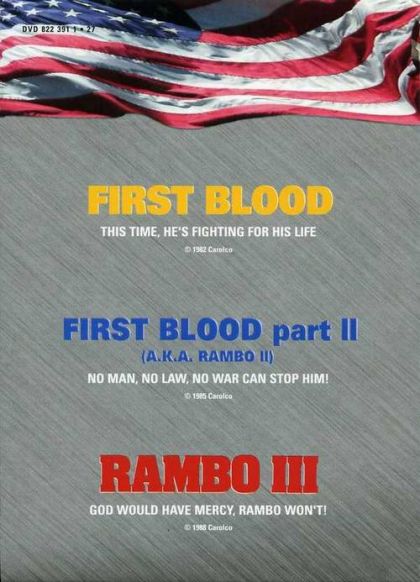 #First BloodZijn laatste vriend is overleden. Doelloos loopt hij rond. En als hij dan ook nog eens wordt opgepakt voor landloperij, dan knapt er iets in Vietnamveteraan John Rambo (Sylvester Stallone). Hij vecht zich het politiebureau uit en vlucht de bossen in. Sherrif Teasle (Brain Dennehy) laat niet met zich spotten en zet meteen een grote klopjacht op. Een door-en-door getrainde guerilla-specialist als Rambo laat zich echter niet zomaar pakken. Integendeel, zelfs de hele politiemacht is hij te slim af. Wie weet kan Kolonel Trautman, Rambo's oude Vietnamcommandant hem kalmeren...#First Blood part IIKolonel Trautman (Richard Crenna) houdt de in gevangenschap levende John Rambo (Sylvester Stallone) vrijheid en heraanstelling in het leger voor ogen als hij instemt met een speciale Vietnam-missie. Rambo accepteert het aanbod en vertrekt naar Thailand voor nadere instructies. Geholpen door de mooie Vietnamese agente Co Boa begint de oud-commando aan zijn opdracht, het opsporen van achtergebleven krijgsgevangenen. Dan wordt hij verraden door zijn superieuren waardoor Rambo zelf in de handen van een sadistische kampcommandant valt. Dan knapt er iets in de vechtmachine...#Rambo IIIRambo (Sylvester Stallone) heeft zich teruggetrokken in een klooster, ergens in Thailand. Hij verdient zijn geld met thaiboxwedstrijden in de stad. Als zijn oude commando-instructeur en Vietnamcommandant, Kolonel Trautman, hem wil recruteren voor een geheime missie, achter de vijandelijke linies in Afghanistan, weigert hij. Wanneer Trautman zelf gevangen wordt genomen en de Amerikaanse regering geen enkele poging onderneemt om hem te bevrijden, raapt Rambo zijn speciale uitrusting bij elkaar en begint een eenmansoorlog tegen het Russische leger, in het ruige levensgevaarlijke Afghanistan, met als doel, het bevrijden van zijn ten dode opgeschreven en enige vriend.