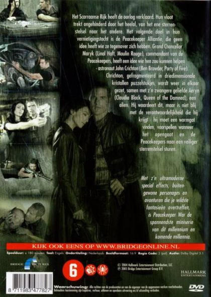 Het Scarraanse Rijk heeft de oorlog verklaard. Hun vloot trekt ongehinderd door het heelal, van het ene sterrenstelsel naar het andere. Het volgende doel in hun vernietigingstocht is de Peacekeeper Alliantie, die geen idee heeft wie ze tegenover zich hebben. Grand Chancellor Maryk (Linal Haft, 'Moulin Rouge'), commandant van de Peacekeepers, heeft een idee wie hen zou kunnen helpen - astronaut John Crichton (Ben Browder, 'Party of Five').Crichton, gefragmenteerd in driedimensionale kristallen puzzelstukjes, wordt weer in elkaar gezet, samen met z'n zwangere geliefde Aeryn (Claudia Black, 'Queen of the Damned'), een alien. Hij waardeert dit, maar is niet blij met de verantwoordelijkheid die hij krijgt - hij moet een wormgat vinden, voorspellen wanneer het opengaat en de Peacekeepers naar een veiliger sterrenstelsel sturen.Met z'n ultramoderne special effects, buitengewone personages en avonturen die je wildste fantasieën overtreffen, is Peacekeeper War de spannendste miniserie van dit millennium en komende millennia.