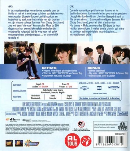 In deze spitsvondige romantische komedie over de liefde en het lot is een jonge schrijver van teksten voor wenskaarten (Joseph Gordon-Levitt) hopeloos en hulpeloos op zoek naar het meisje van zijn dromen... en zijn nieuwe collega Summer Finn (Zooey Deschanel) zou wel eens "de ware" kunnen zijn. Maar de 500 dagen van hun excentrieke relatie onthullen (in onbepaalde volgorde) dat de weg naar het geluk onvoorspelbaar, onbedwingbaar... en ongelooflijk grappig is!