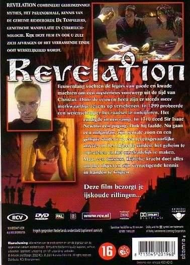 Revelation combineert geheimzinnige mythes, het paranormale, kennis van de geheimzinnige ridderorde. De Tempeliers, genetische manipulatie en cybertechnologie. Kijk deze film en ook u zult zich afvragen of het verrassende einde ooit werkelijkheid wordt.Eeuwenlang vochten de legers van goede en kwade machten om een mysterieus voorwerp uit de tijd van Christus. Door de eeuwen heen zijn er steeds meer merkwaardige tekens op verschenen. In 1299 probeerde een wetenschapper het raadsel te ontcijferen. Het eindigde in een ramp. In 1710 deed Sir Isaac Newton een poging. Ook hij faalde. Nu gaan een miljardair, zijn geniale zoon en een geflipte student op een levensgevaarlijke missie om het object te vinden, het geheim te ontrafelen en het onschadelijk te maken. Maar een duistere, Bijbelse kracht doet alles om het object en zijn vernietigende kennis in handen te krijgen ...Deze film bezorgt je ijskoude rillingen...